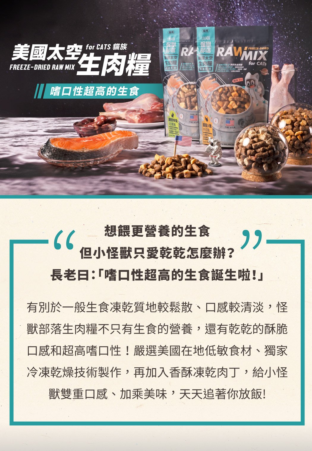 怪獸部落 貓用 美國太空凍乾生肉糧 140G